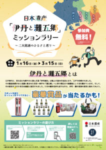 これを活用して、日本遺産『「伊丹諸白」と「灘の生一本」下り酒が生んだ銘醸地、伊丹と灘五郷』の地を巡る『日本遺産「伊丹と灘五郷」ミッションラリー ~二大銘酒のふるさと巡り』を実施しています。
